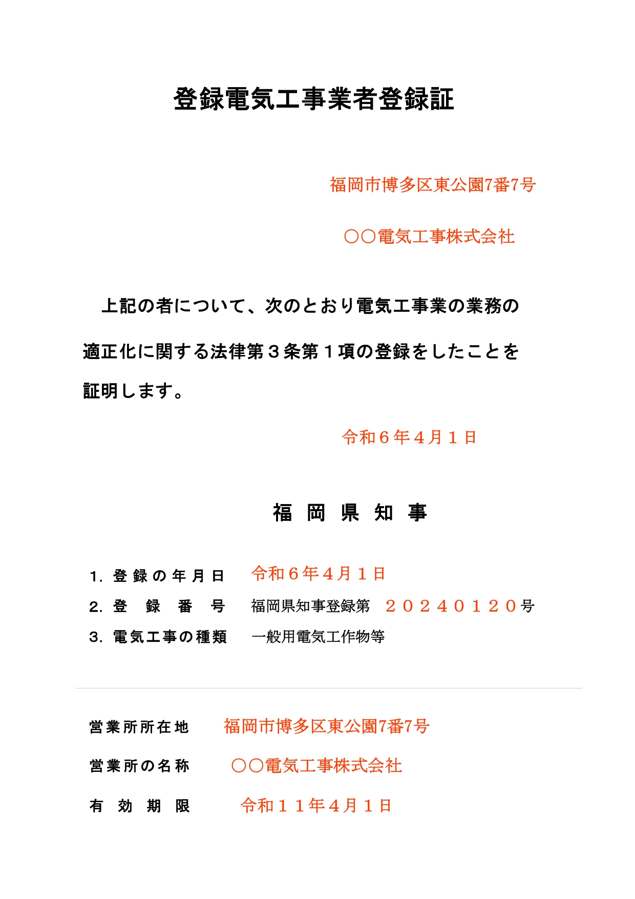 都道府県に「登録」し、登録電気工事業者として県から証明してもらう必要があります。